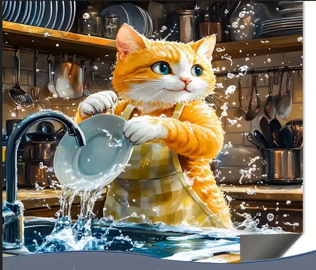 55cm x 45cm BULAŞIKCI KEDİ TASARIMI TEZGAH ÜSTÜ BULAŞIK KURUTMA MATI BULAŞIKLIK KURUTMA ÖRTÜSÜ