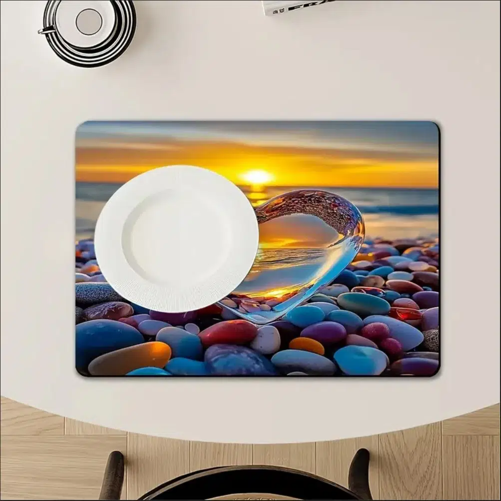 55cm x 45cm DENİZİN KALBİ TASARIMI TEZGAH ÜSTÜ BULAŞIK KURUTMA MATI BULAŞIKLIK KURUTMA ÖRTÜSÜ