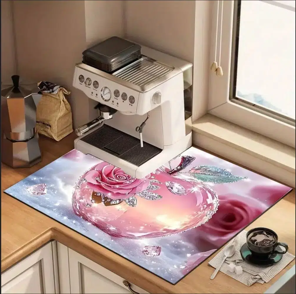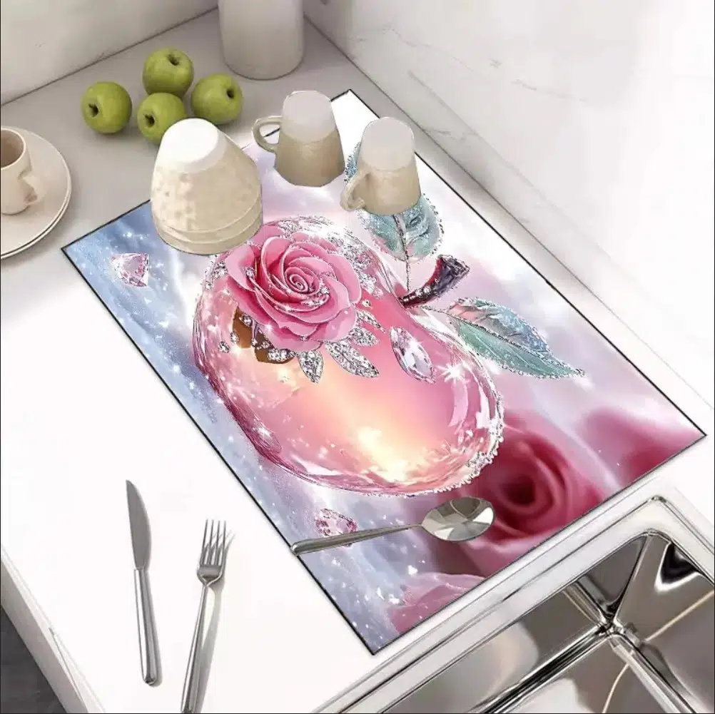 55cm x 45cm GÜL ELMAS TASARIMI TEZGAH ÜSTÜ BULAŞIK KURUTMA MATI BULAŞIKLIK KURUTMA ÖRTÜSÜ