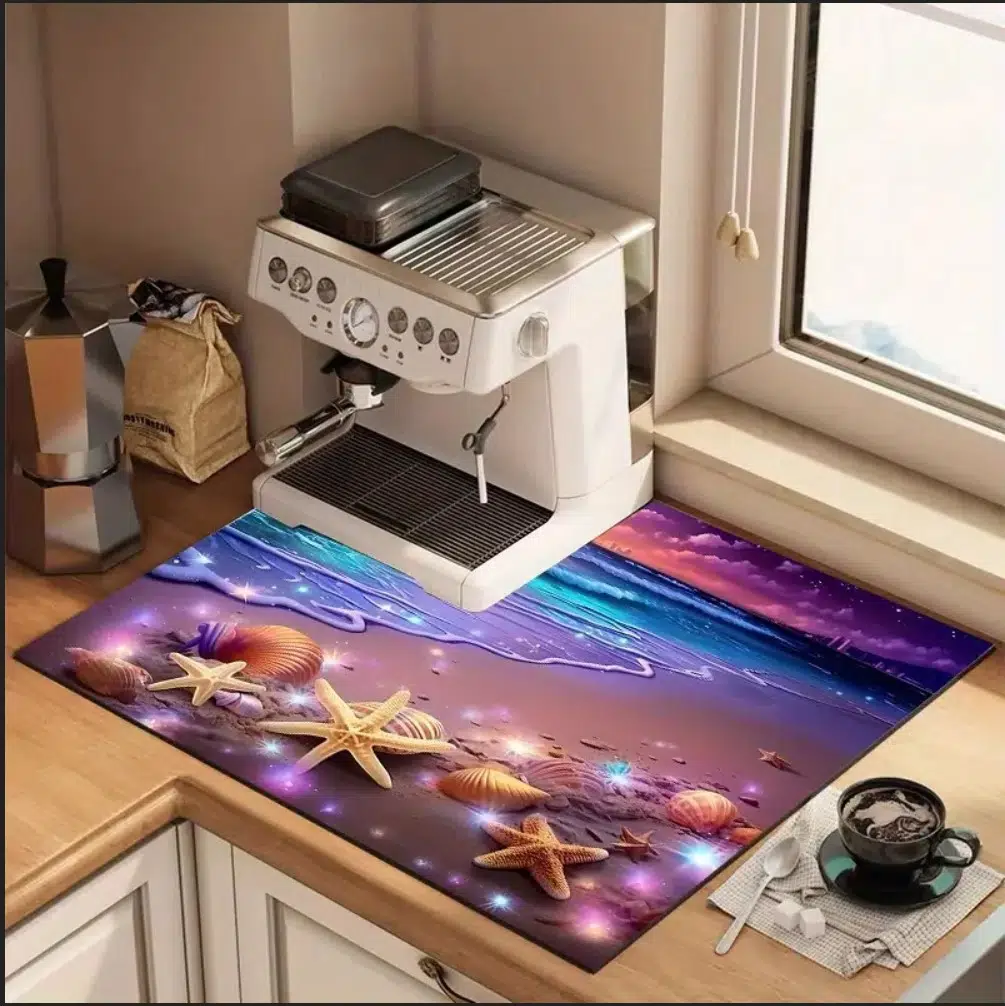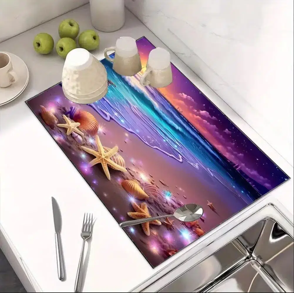 55cm x 45cm OKYANUS ESİNTİSİ TASARIMI TEZGAH ÜSTÜ BULAŞIK KURUTMA MATI BULAŞIKLIK KURUTMA ÖRTÜSÜ