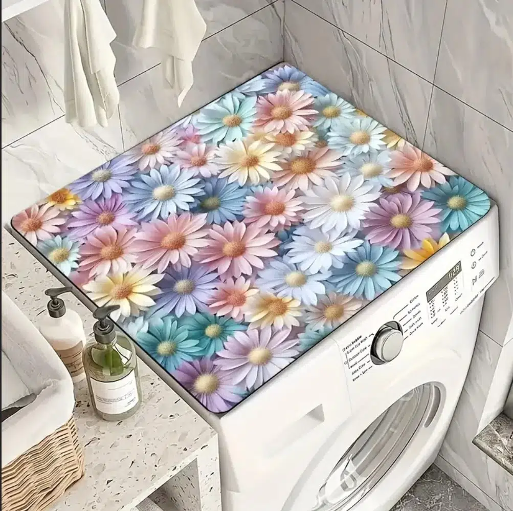 55cm x 45cm RENKLİ PAPATYALAR TASARIMI TEZGAH ÜSTÜ BULAŞIK KURUTMA MATI BULAŞIKLIK KURUTMA ÖRTÜSÜ