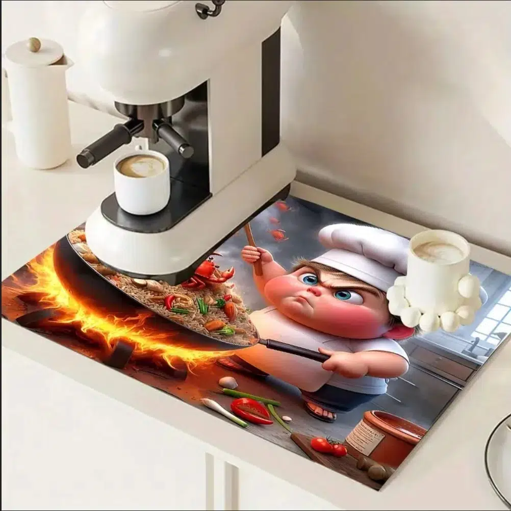 55cm x 45cm ŞEF KARİKATÜRÜ TASARIMI TEZGAH ÜSTÜ BULAŞIK KURUTMA MATI BULAŞIKLIK KURUTMA ÖRTÜSÜ