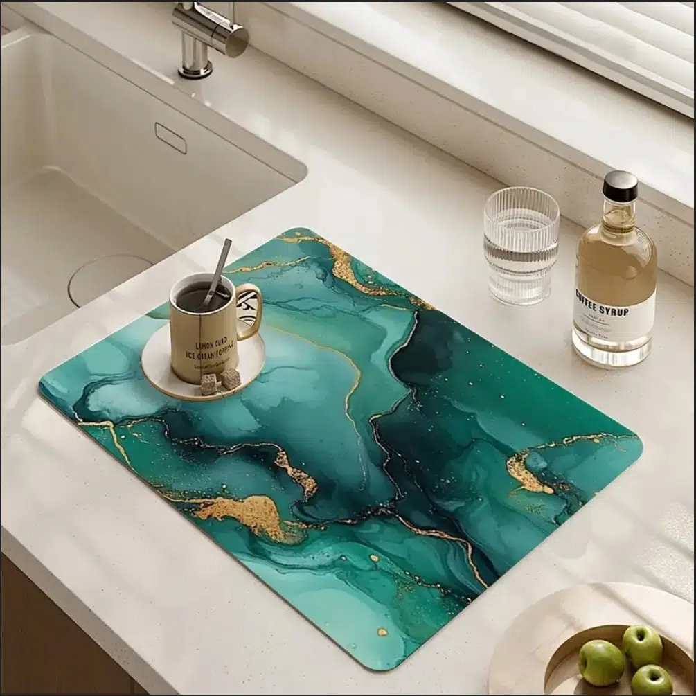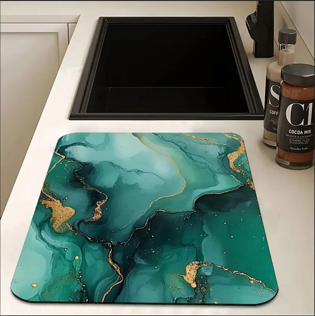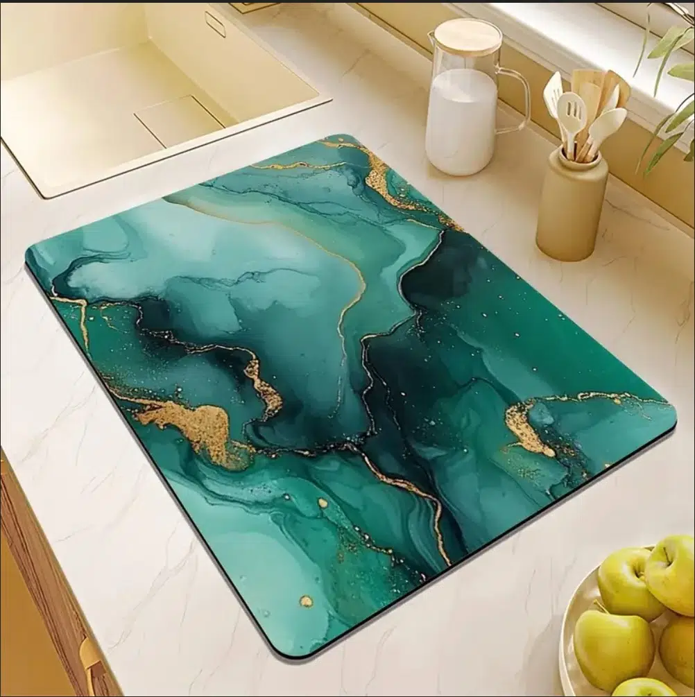 55cm x 45cm YEŞİL MERMER DESENLİ TEZGAH ÜSTÜ BULAŞIK KURUTMA MATI BULAŞIKLIK KURUTMA ÖRTÜSÜ