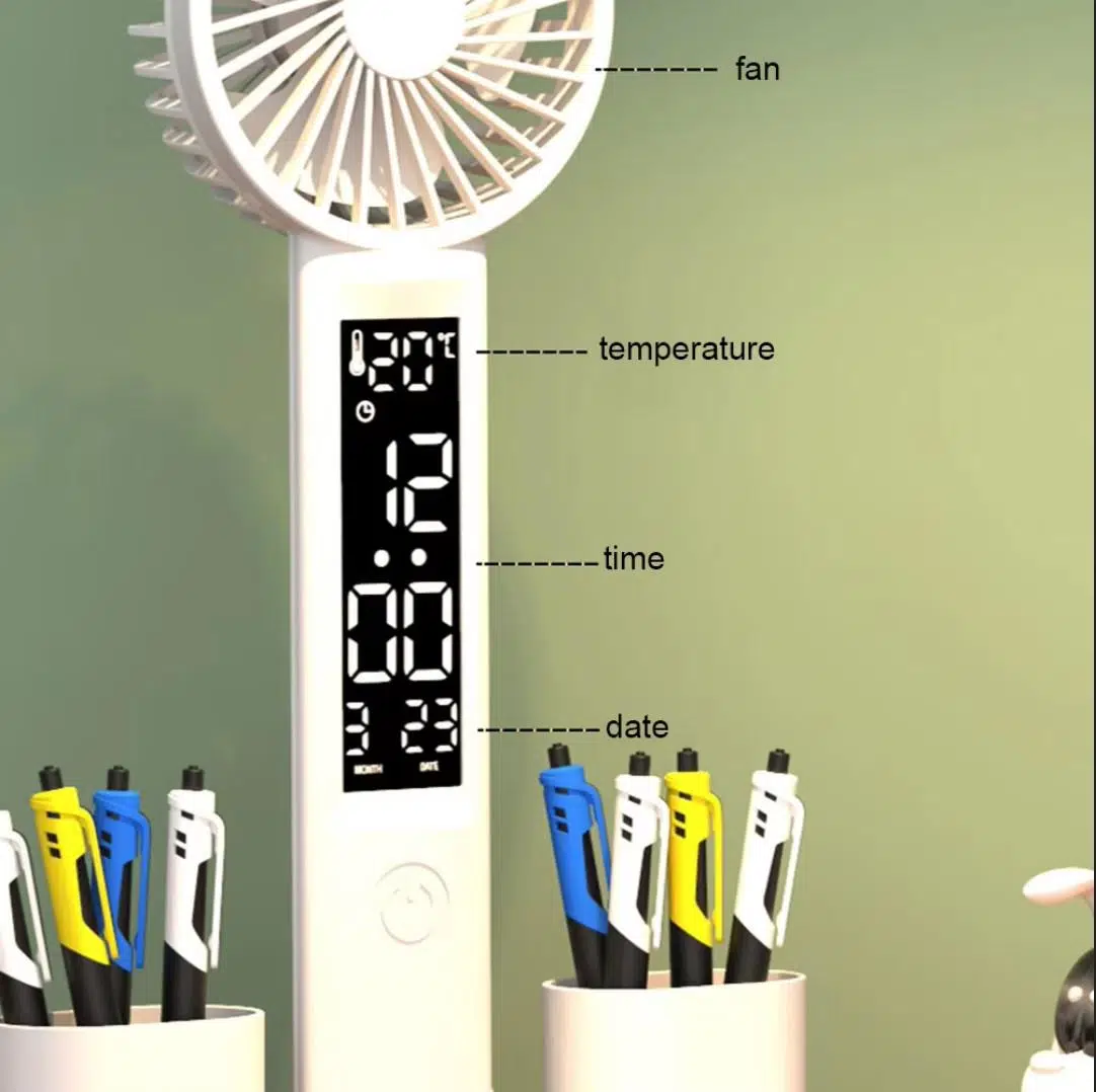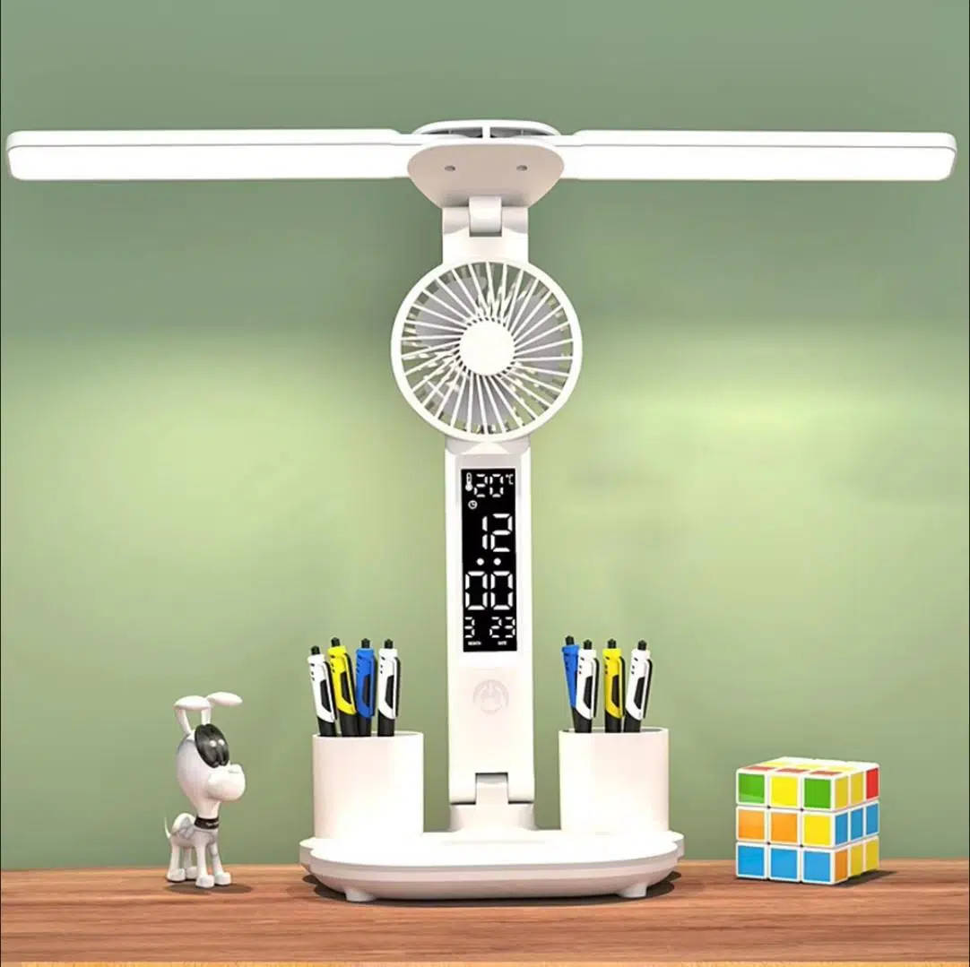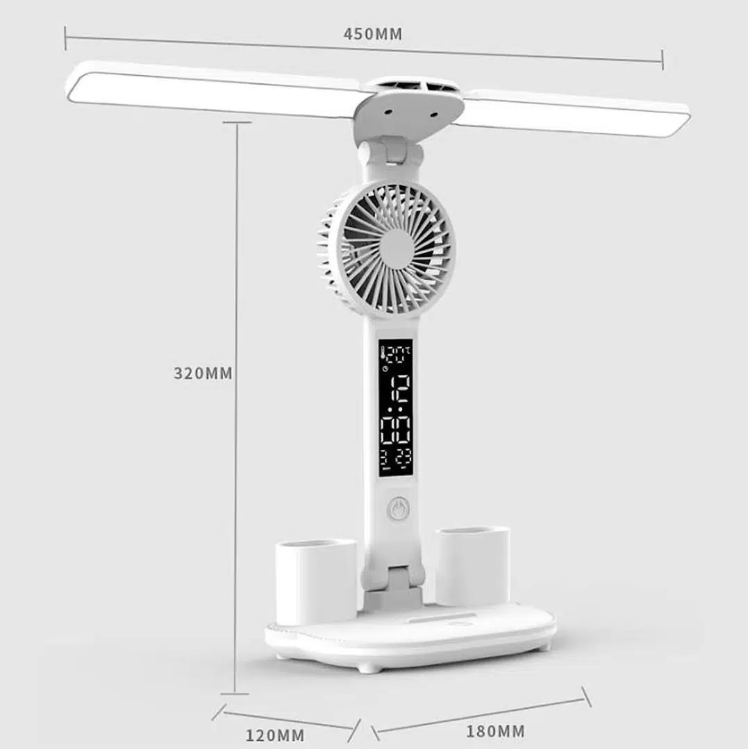 SGE TEKNOLOJİ ÇOK FONKSİYONLU FANLI 3 RENK LED IŞIK MASA LAMBASI MASA SAATİ KALEMLİK TERMOMETRE