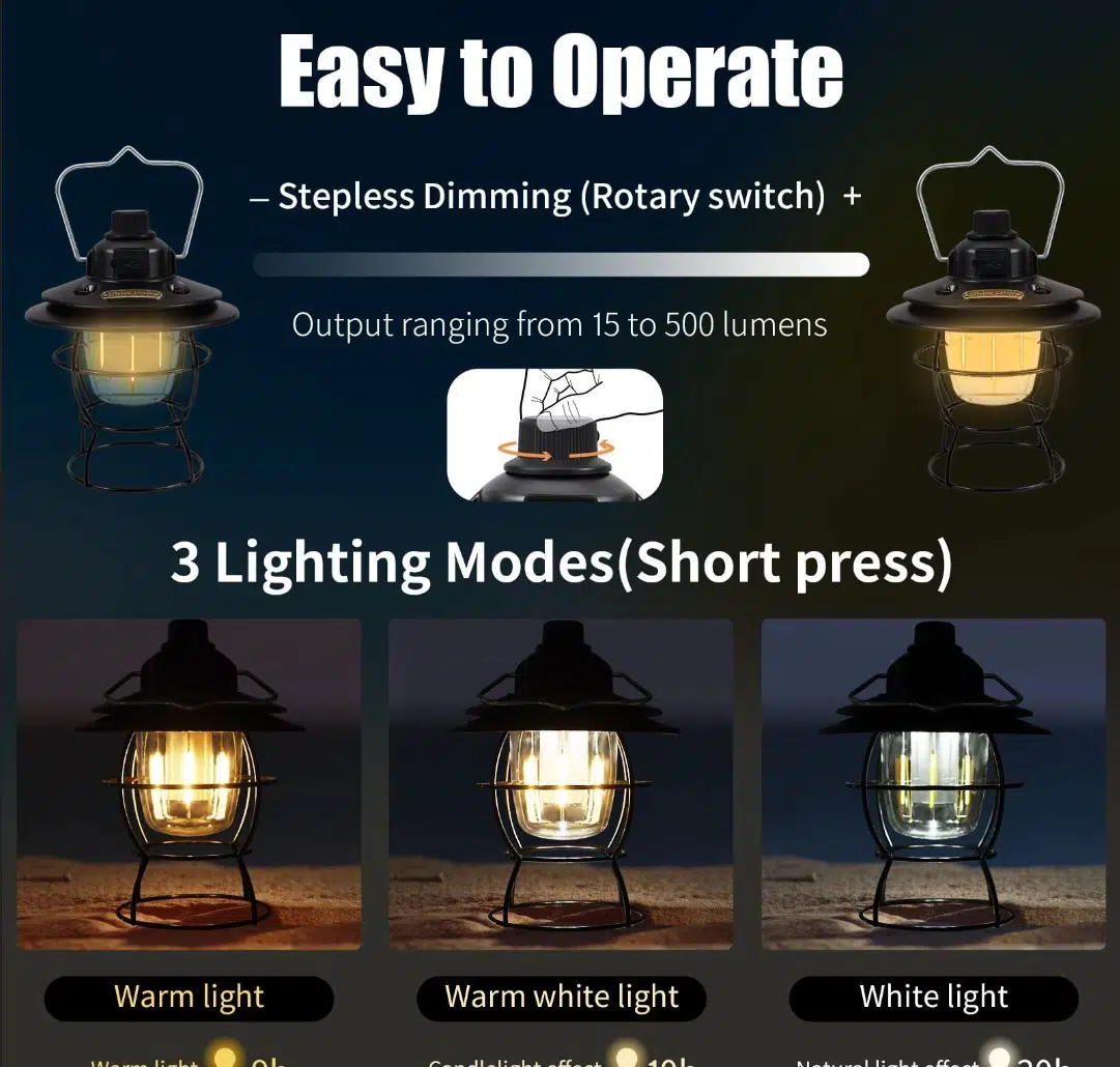 - Güvenli enerji tasarrufu, taşınabilir, yüksek parlaklık. Bu kamp lambası, aydınlatma ihtiyaçlarınızı her yönden karşılamaya hazır