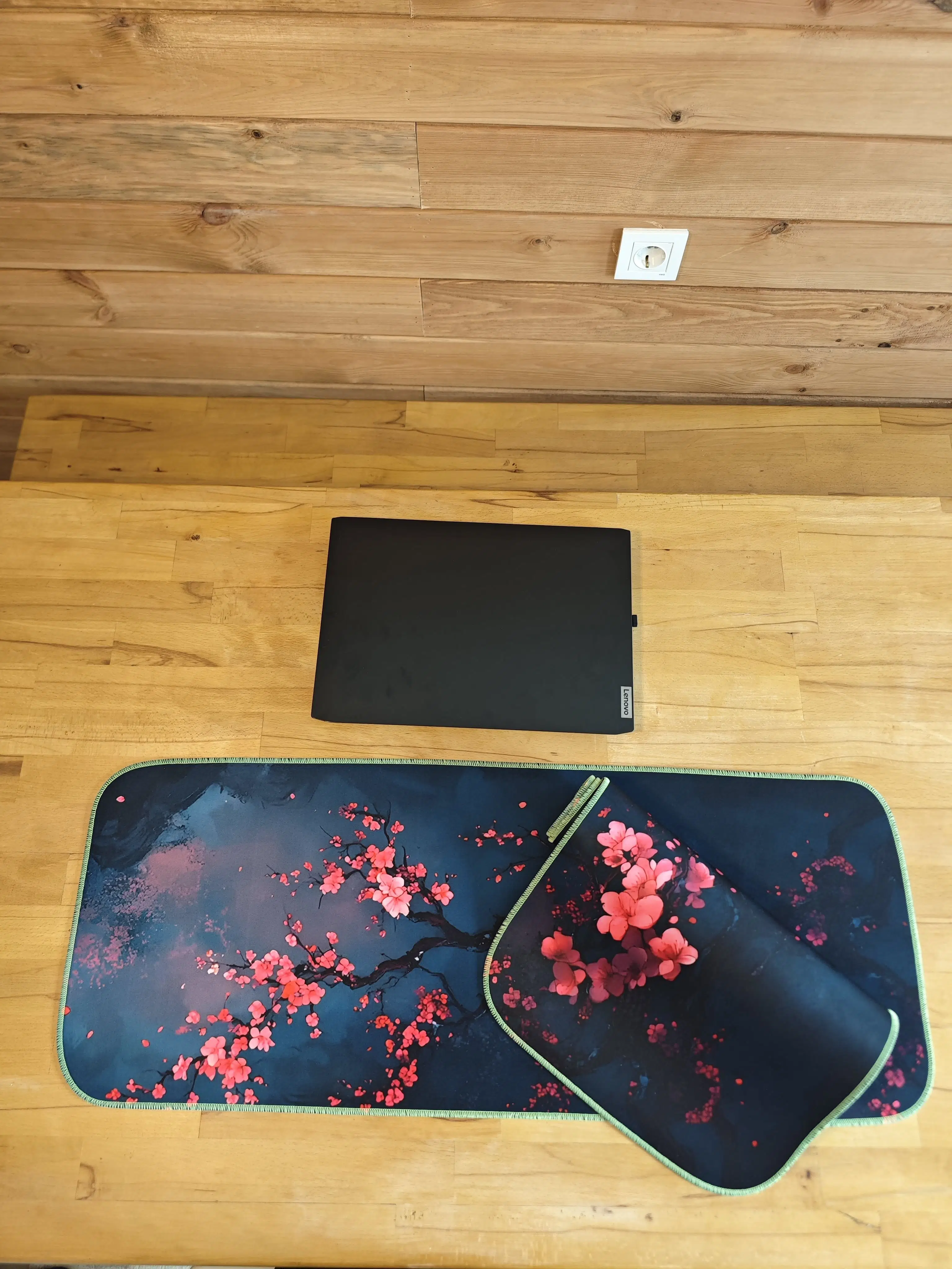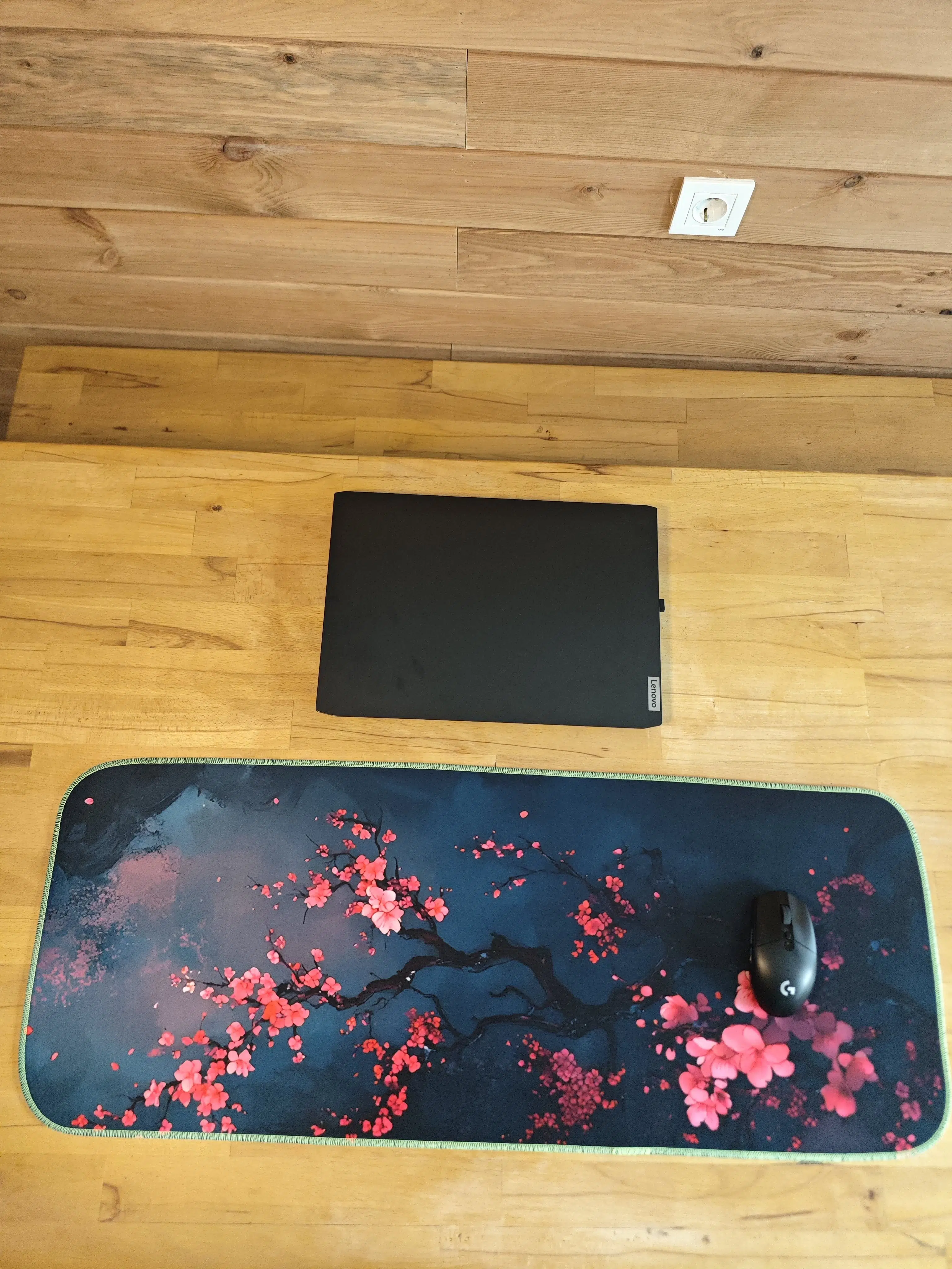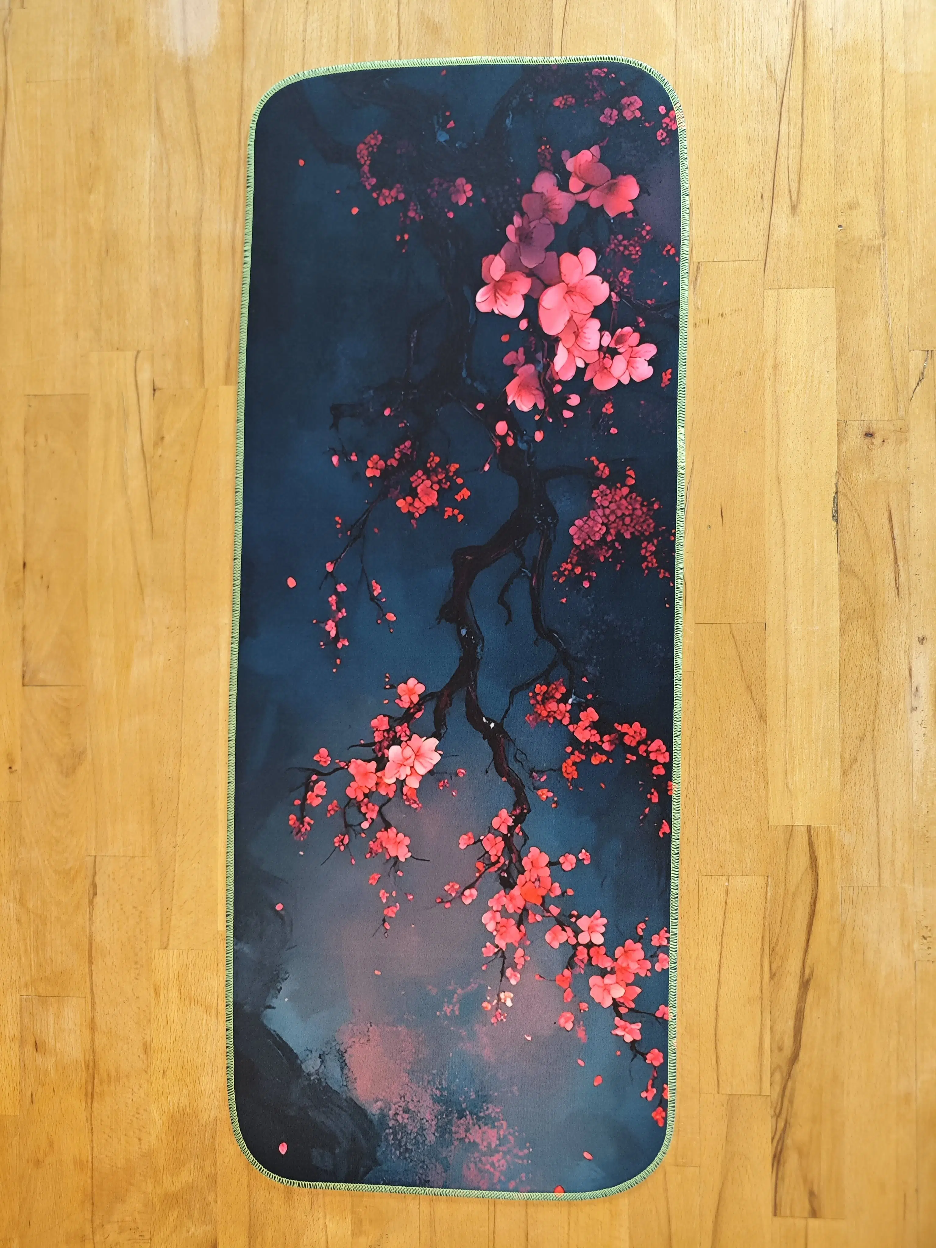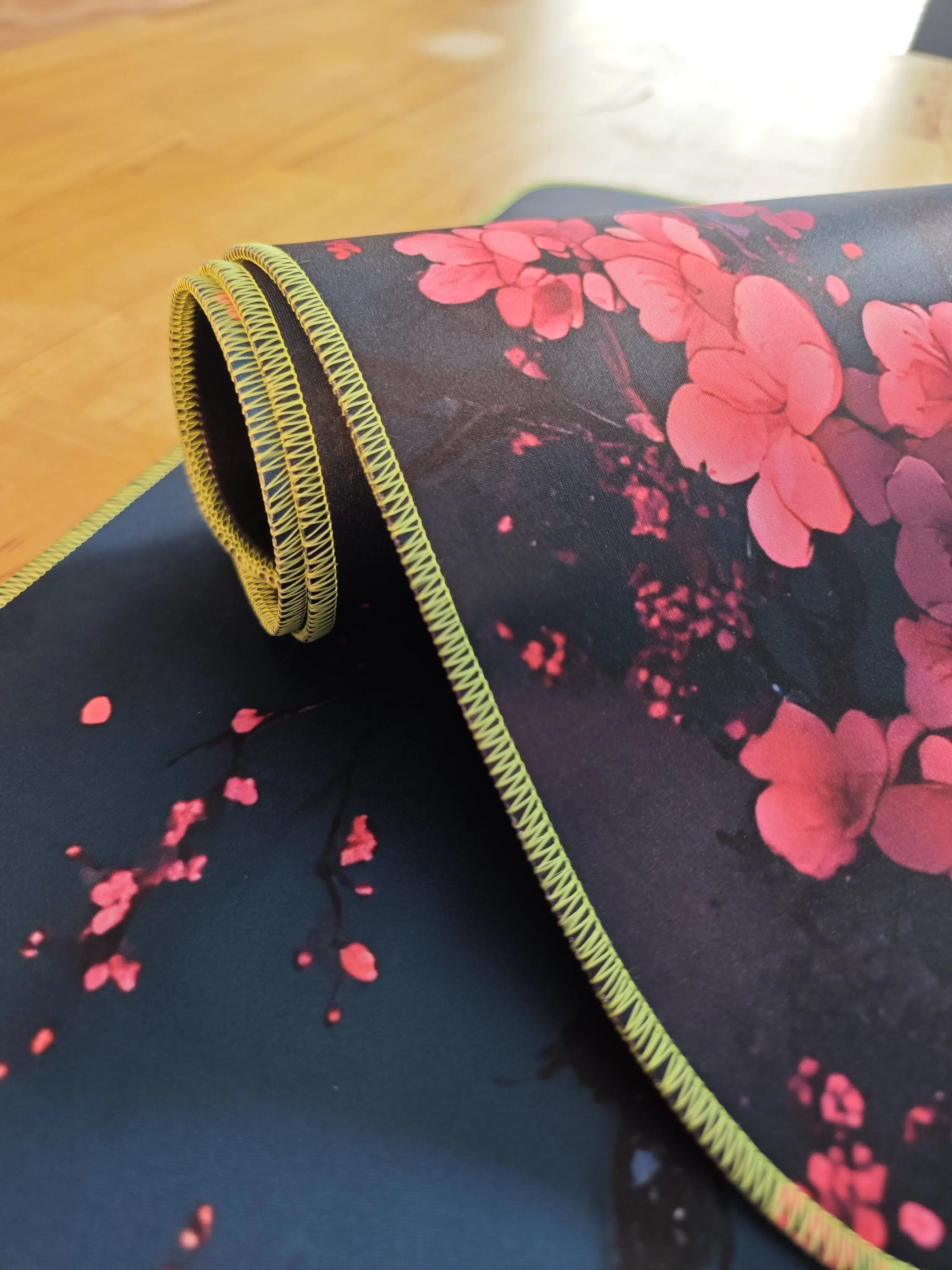 SGE TEKNOLOJİ 70X30 CM FOSFORLU DİKİŞLİ KİRAZ ÇİÇEĞİ TEMALI KAYDIRMAZ TABAN SPEED YÜZEY OYUNCU MOUSE PAD GAMİNG