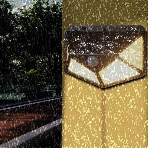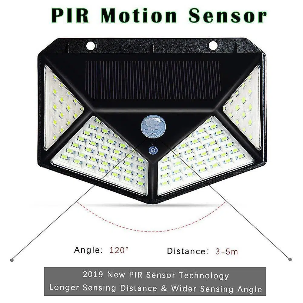 100LED güneşenerjili lamba su geçirmez dört taraflı insan algılar. enerji tasarrufu ve çevre koruma, yeşil aydınlatma, uzun ömürlü, dayanıklılık, düşük arıza onarım oranı, yüksek radyasyon kararlılığı, basit kurulum (Sadece 2 vidaya ihtiyaç duyulabilir dış duvar üzerine güneş ışığı olabilir. Kullanımı kolay, akıllı ışık algılama kontrolü, ayar yok, enerji tasarrufu ve kullanışlı, evinizi daha güzel ve akıllı hale getiriyor.