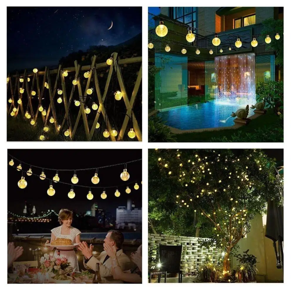 SGE TEKNOLOJİ KRİSTAL 8 MODLU GÜNEŞ ENERJİLİ 6 METRE 30 LED SARI BAHÇE TERAS PARTİ BALKON SÜSÜ AYDINLATMA LAMBASI