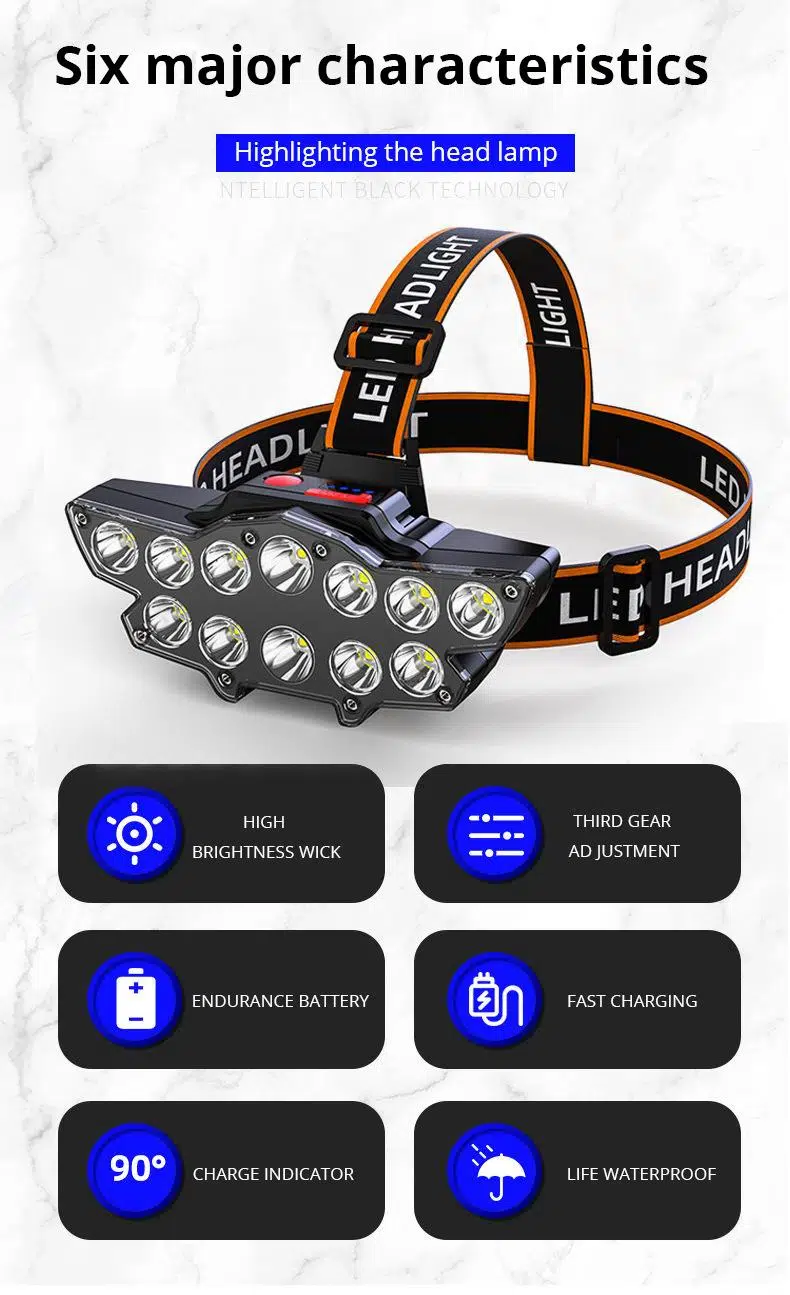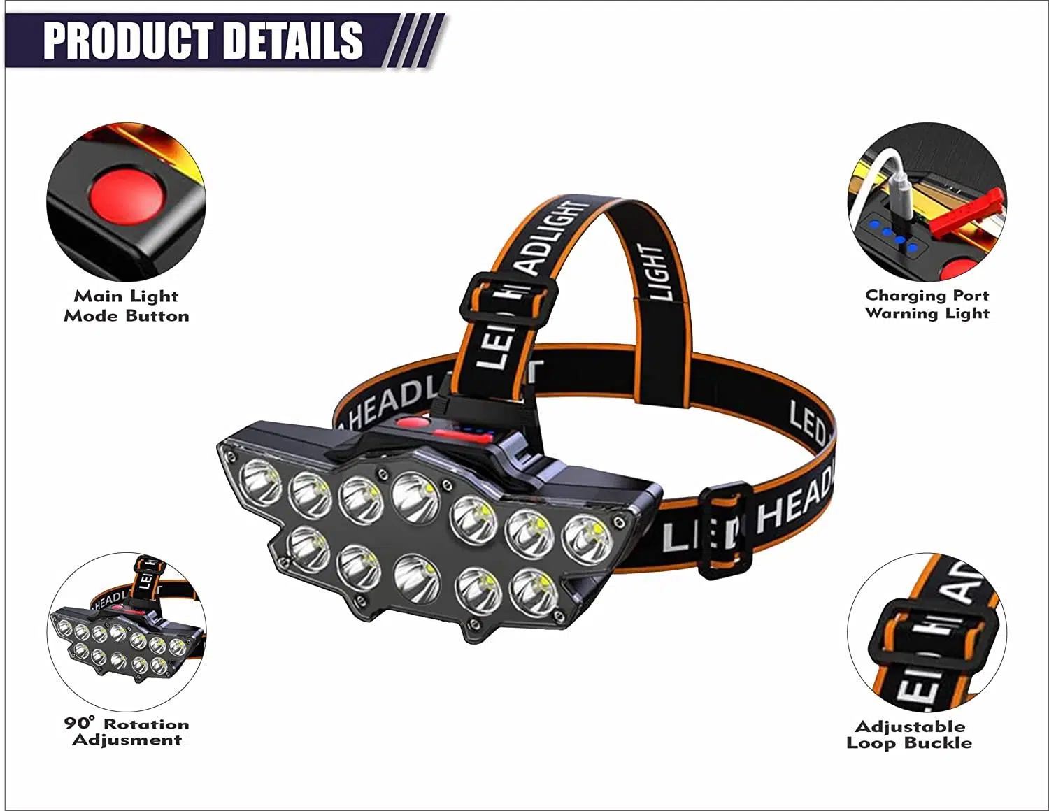 【Süper parlak ve 4 çalışma modu 】 far 12 LED ampulden oluşur ve daha güçlü bir parlak sağlayabilen büyük şarj edilebilir pillerle çalışır.