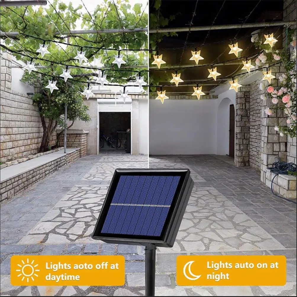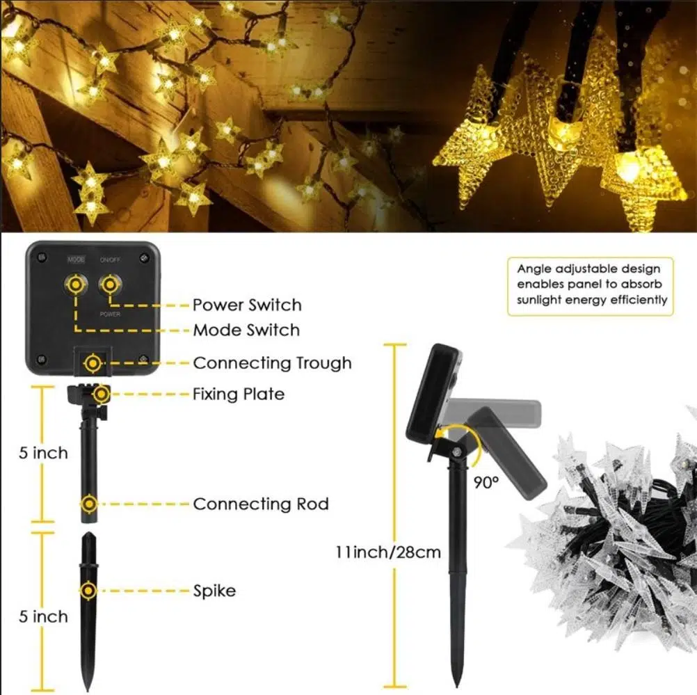 1.【 enerji tasarrufu güneş yıldız ışıkları 】: elektrik ücreti yok sadece şarj etmek için güneş ışığının altına GÜNEŞ PANELI yerleştirin. Yükseltilmiş solarpanel: tam şarj olduktan sonra 8-12 saate kadar yanar. Not: kış geldiğinde, yetersiz güneş ışığı nedeniyle ışık dizisinde yetersiz enerji olabilir, yeterli güneş enerjisi almasını sağlamak için lütfen GÜNEŞ PANELI 'ün ön tarafını doğrudan güneş ışığına yerleştirin.