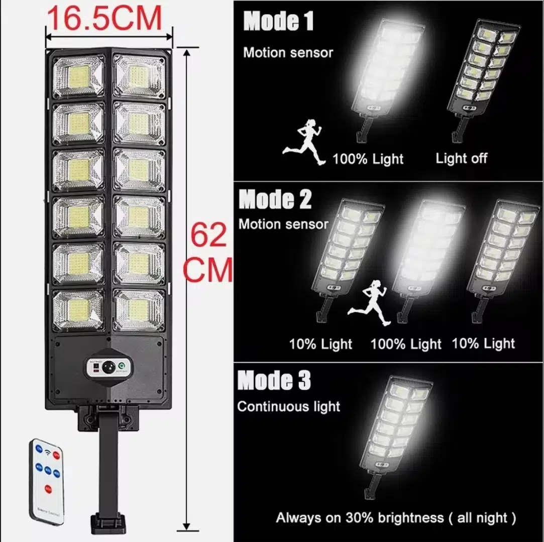 12000 LÜMEN 504 LED SOLAR HAREKET SENSÖRLÜ KUMANDALI BAHÇE SOKAK GARAJ EV AYDINLATMA LAMBASI IŞIK