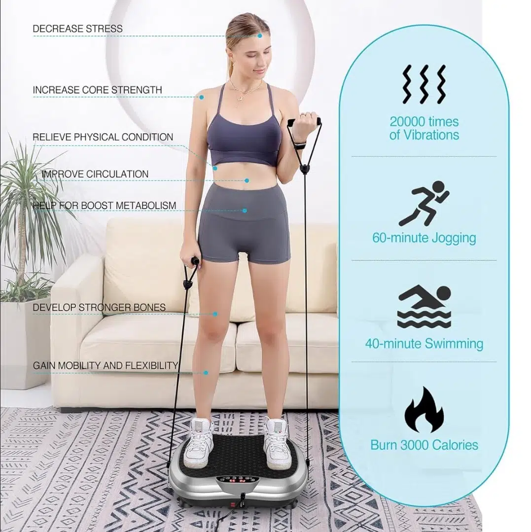 ✅HAYALİNİZDEKİ VÜCUDU OLUŞTURUN: İdeal vücudunuzu anında şekillendirmek için titreşimli egzersiz makinenize atlayın! Sistem, kasları uyaran tam vücut titreşimi oluşturarak ekstra kas kasılmasına ve artan aktivasyona neden olur. Bu tür bir makine, refleks reaksiyonlarını sürdürmeye yardımcı olarak kalori ve yağ yakar. Vücudunuzun yağları koşmaktan çok daha hızlı işlemesine yardımcı olabilir.